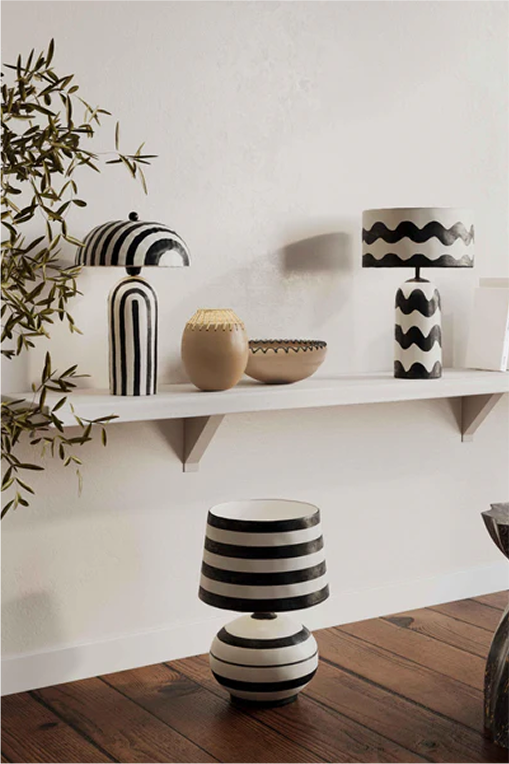 Introduce a touch of modern artistry to your interiors with the Rythm dome lamp a handcrafted paper mache masterpiece that embodies both design and sustainability. Its sculptural form, defined by bold hand-painted black stripes against a white backdrop, creates a striking rhythm of movement and balance. Topped with a dome shade that mirrors the base’s pattern, this lamp feels like functional art—playful yet elegant, contemporary yet timeless. Beyond illumination, it’s a conscious décor choice, crafted from eco-friendly materials that celebrate slow, mindful living.