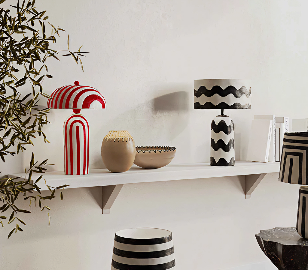 Introduce a touch of modern artistry to your interiors with the Rythm dome lamp—a handcrafted paper mache masterpiece that embodies both design and sustainability. Its sculptural form, defined by bold hand-painted black stripes against a white backdrop, creates a striking rhythm of movement and balance. Topped with a dome shade that mirrors the base’s pattern, this lamp feels like functional art—playful yet elegant, contemporary yet timeless. Beyond illumination, it’s a conscious décor choice, crafted from eco-friendly materials that celebrate slow, mindful living.